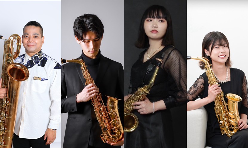 野原シーサー朝宇(バリトンサクソフォン)、諸見龍之介(ソプラノサクソフォン)、上地佑生(テナーサクソフォン)、大城夏穂(アルトサクソフォン)