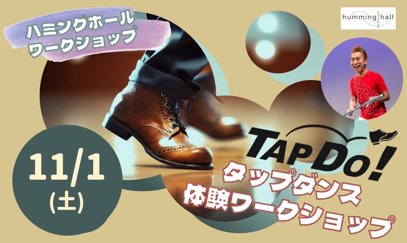 12/14(日)東大和ハミングホールで公演「TAP DO!」のリーダー“ポケ”によるプロ指導!タップダンス未経験でももちろん大丈夫!リズムを感じて楽しみましょう。11/30(日)には市内体育館でも開催予定!