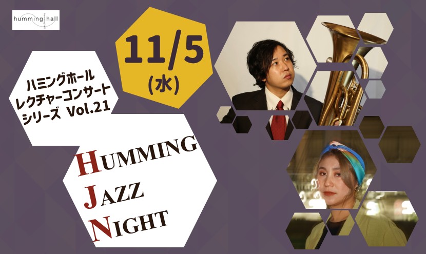 ハミングホールレクチャーコンサートシリーズ。今回は、「ジャズ音楽」をフィーチャー。90分程のレクチャーコンサートでジャズの歴史や変遷、知識を学びつつ、この日限りのスペシャル編成で演奏をお楽しみいただけます。